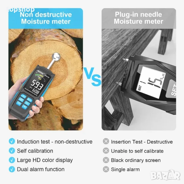 С този тип влагомер можете да измервате дълбоката влага в строителните материали. Влагомерът е подходящ за измерване на дърво, гипсокартон, бетон, циментова замазка, циментов разтвор, мазилка на варова основа и анхидридна замазка. Той е универсален измервателен уред.