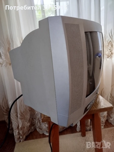 Малак телевизор,работещ,с дистанционно и кабел.Само за проба са сложени батериите на дистанционно то,после са свалени за да не се поразят.Никога не е ходил на ремонт.