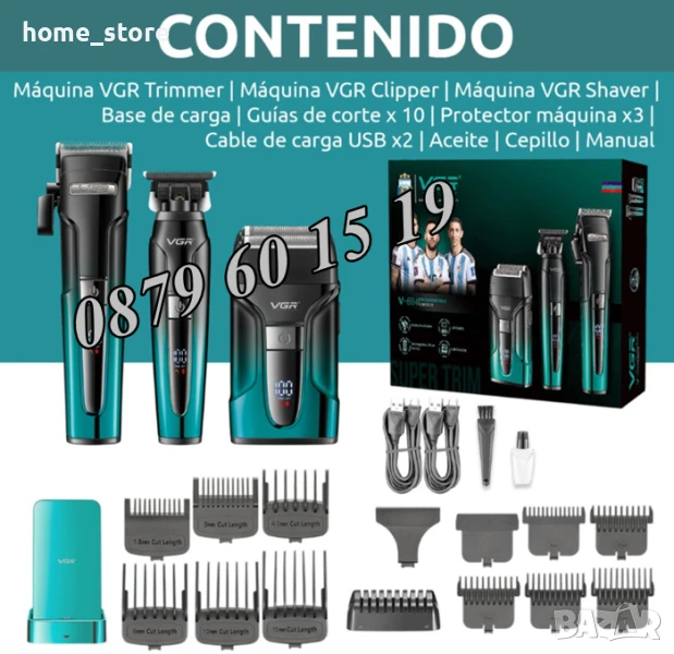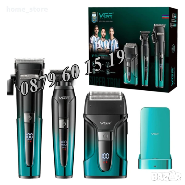 Професионален КОМПЛЕКТ Машинка за подстригване, електрическа самобръсначка и тример VGR V-694