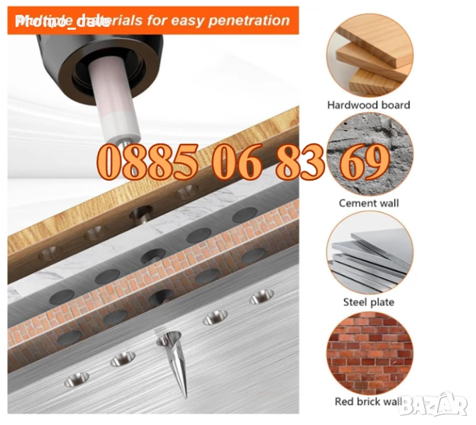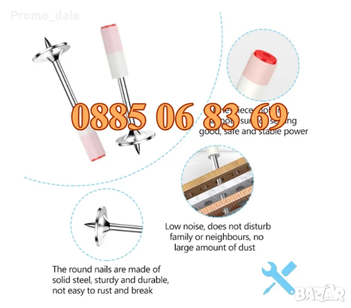 Острият връх на стоманени пирони, силно проникване, може бързо да се забие в стената, няма да има много шум по време на монтажа, без много прах, спестяване на енергия и опазване на околната среда.