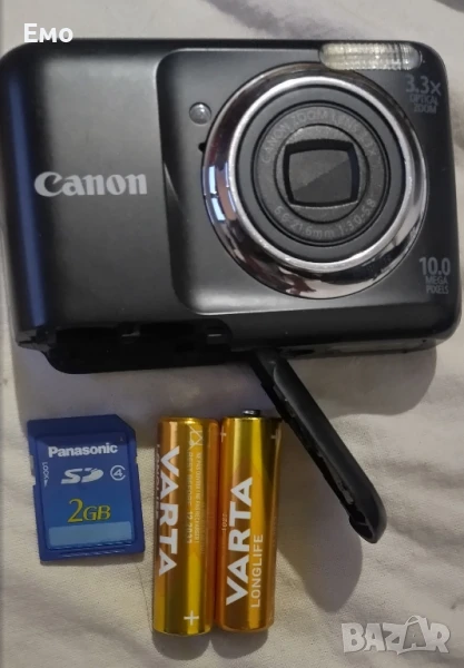 Апарата е 10Mpix с 3,3 оптичен зум, работи с обикновени АА батерии, изключително добро състояние + карта памет 2Gb.