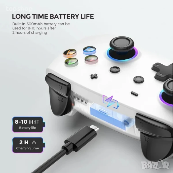 Алтернатива на Nintendo Switch Pro Controller: ECHTPower Switch Controller е не само съвместим с Switch, Switch OLED модел и Switch Lite, но може да се използва и на Android, iOS MFi, Windows PC (кабелна връзка). Без значение дали играете в режим TV или маса, през деня или през нощта, ECHTPower Nintendo Pro контролерът е добър спътник и ви позволява да лъжете Bling игри по всяко време и можете да им се наслаждавате навсякъде
