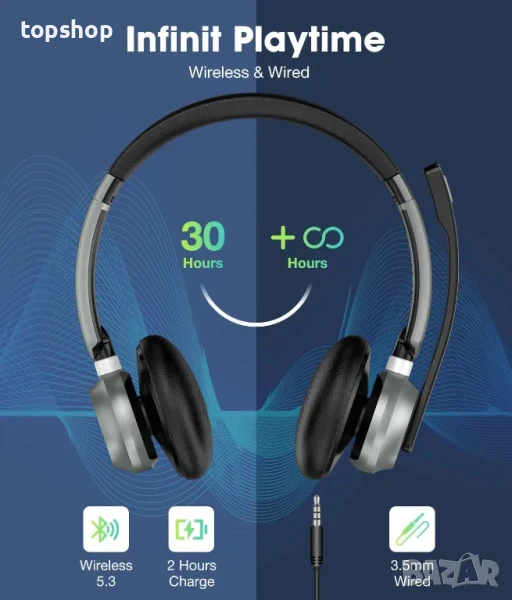 Безжични слушалки с шумопотискащ микрофон, блутут V5.3, USB и заглушаване на микрофона за компютър/лаптоп/компютър/iPhone/Android/мобилни телефони/ подходящи за Ms Teams/Skype
