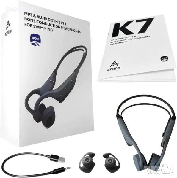 НОВИ AZ AZTINE K7 водоустойчиви слушалки с костна проводимост, До 3 метра под вода IPX8, Bluetooth, 16GB Вградена памет, MP3, 8 часа батерия