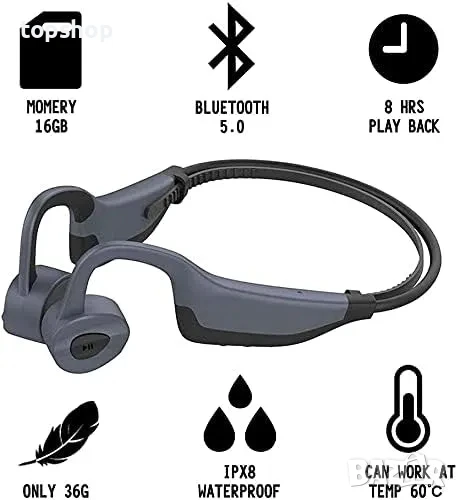 НОВИ Aztine K7 водоустойчиви слушалки с костна проводимост IPX8, Bluetooth, 16GB, MP3, 8 часа бат.