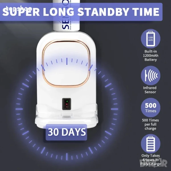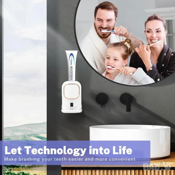 НОВ автоматичен дозатор / диспенсър за паста за зъби USB type C 1200Mah, монтиран на стената