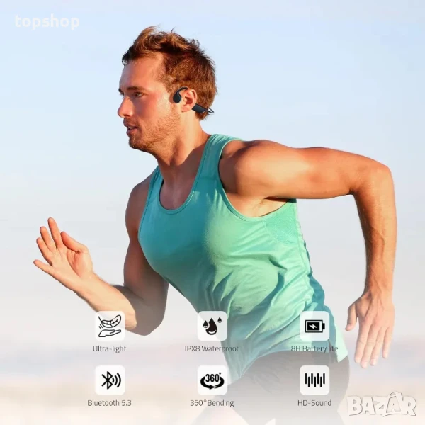 НОВИ Tulbeys X7 водоустойчиви слушалки с костна проводимост, IPX8, Bluetooth, 32GB Вградена памет, MP3