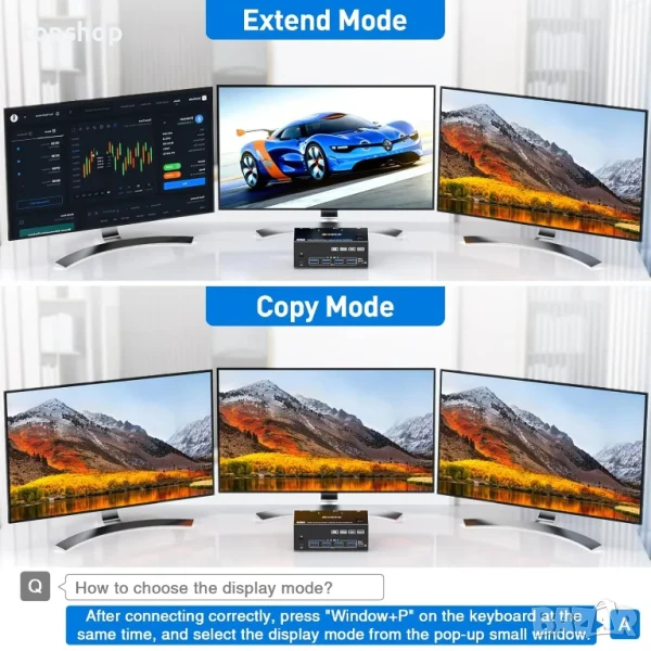 【Поддържа множество режими на показване】2 компютъра 3 монитора KVM превключвател Displayport поддържа разширен, огледален и снаждащ стенен дисплей. Поддържа много видове входни устройства, като компютър, лаптоп, Apple TV, PS3/PS4, Xbox.