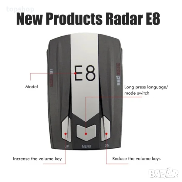 Радар детектор Tovbmup, гласово предупреждение, сребристосив, 9x6,5x3 см