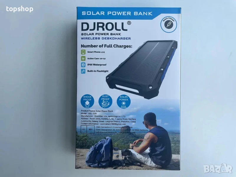 DJROLL Соларна Power Bank 36000mAh, IP66 водоустойчива, двоен USB и Type-C порт 5V/3A изход