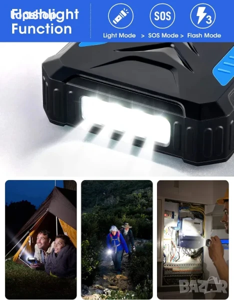 【Издръжливо и безопасно】 Соларното зарядно устройство е изработено от издръжлив ABS+PC материал и силиконов щепсел. Защитете го от дъжд, мръсотия и удар. Power bank има защита от късо съединение, защита от прекомерно разреждане и функция за защита от презареждане.