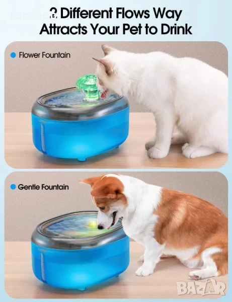 2 Flow Designs - Фонтанът за вода за котки WOPET W300B комбинира фонтан с цветен водопад и фонтан с мехурчета, за да привлече вашия домашно животно да го разгледа и да пие повече вода. Циркулационната система може да увеличи кислорода във водата, което помага да се осигури здравословна и хигиенична вода за любимите ви домашни любимци през целия ден.
