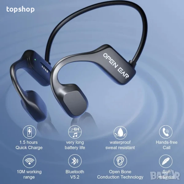 НОВИ Слушалки Monodeal X1 Bone Conduction, Bluetooth 5.2 спортни водоустойчиви IP65 → Обява 50494982