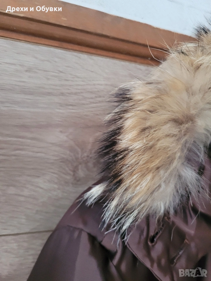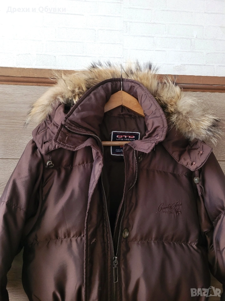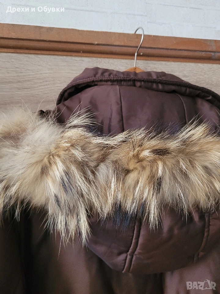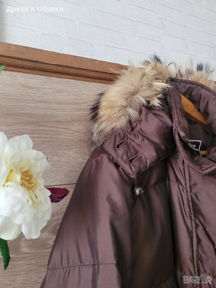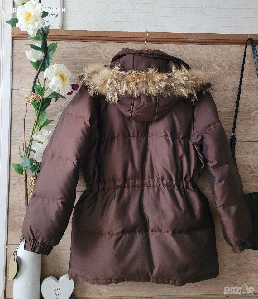 Дамско зимно яке GTD UPSTREAM. Актуален тъмно кафяв цвят, с естествен косъм лисица на качулката. Якето е топло, удобно и подходящо за студените зимни дни. Моделът е с вталяваща линия, която красиво подчертава силуета, и с практично закопчаване цип и копчета. Разполага с два джоба също със закопчаване ципове и капачета отгоре. Ластично пристягане в талията за допълнителен комфорт. Качулката с естествен лисичи косъм придава луксозен и стилен завършек.( сваляема посредством цип). Качествено изпъкващо бродирано лого. Размер Л Гръдна до 114см, дължина 73см Още снимки в коментар. Като ново! Реалната е над 450лв/230€ Символична цена 85€