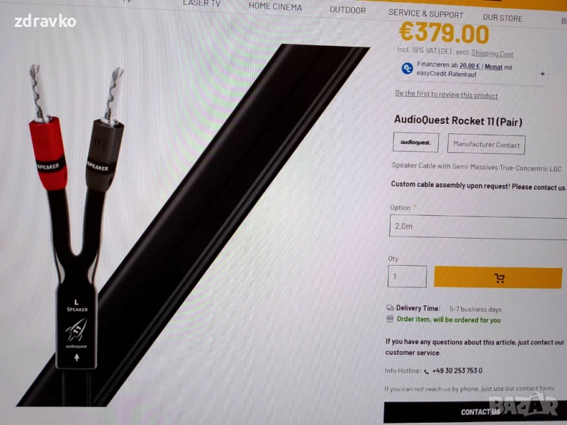 Ако искате да оптимизирате производителността на вашата Hi-Fi система, кабелът за високоговорители AudioQuest Rocket 11 ще ви помогне.3. AudioQuest Rocket 11