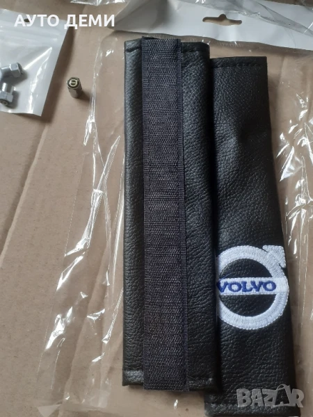 Кожени калъфи за колан на авто седалка с бродирано лого на Волво , 2 калъфа за 14 лв( намалени от 20 лв).