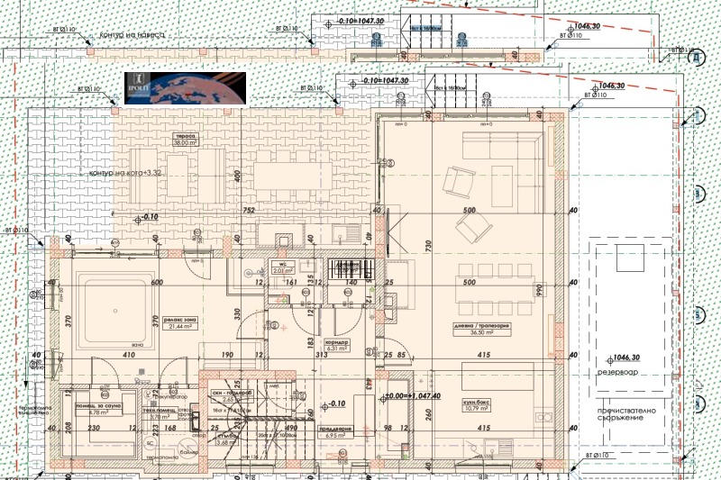 Използваема площ 509 кв.м. - 311 кв.м. жилищна площ, 126 кв.м. сутеренно ниво, 36,35 кв.м. покрит паркинг и 35,68 кв.м. подпокривно пространство