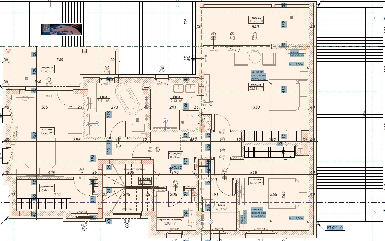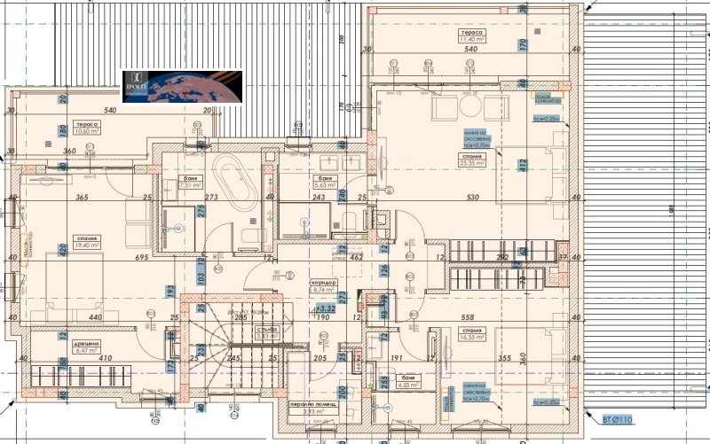 Спалня 2- 23 кв.м. + баня 7 кв.м. и голяма панорамна тераса