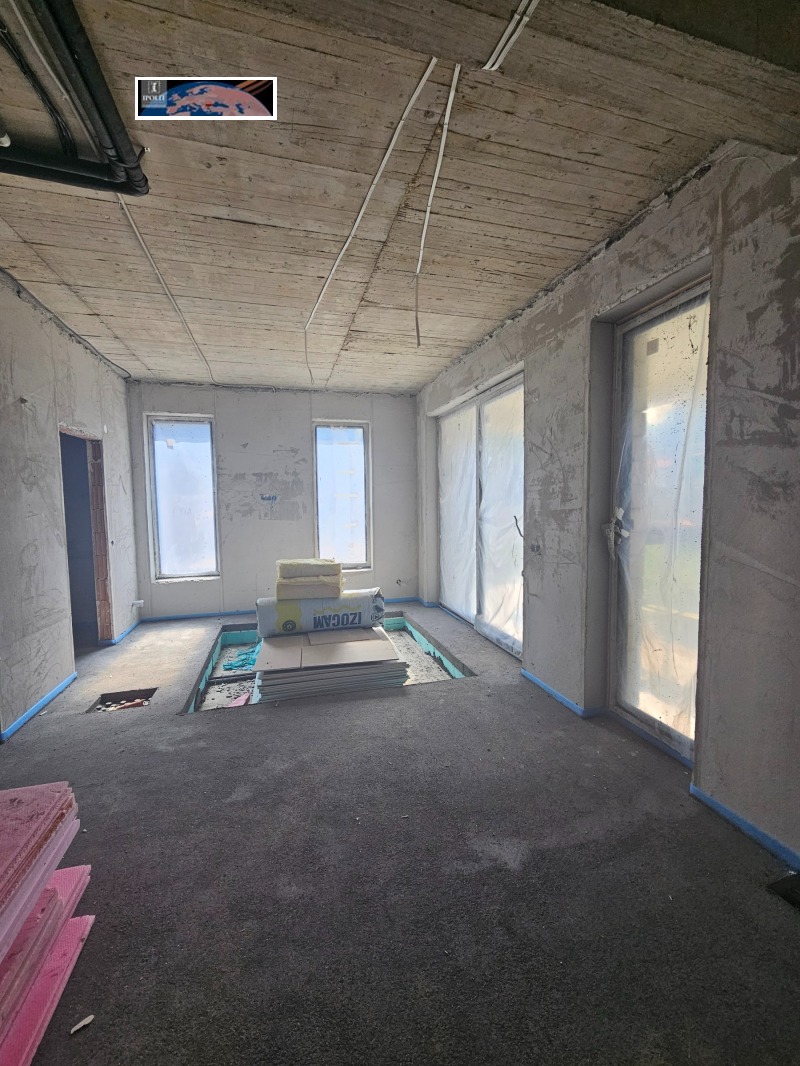 Първи етаж (156 кв.м.): дневна с камина Deville, кухня и трапезария - 47 кв.м., с излаз към 38 кв.м. покрита веранда с барбекю зона, входно антре с гардеробно и тоалетна за гости, СПА зона - 22 кв.м., с място за голямо джакузи и сауна/парна баня, техническо помещение.