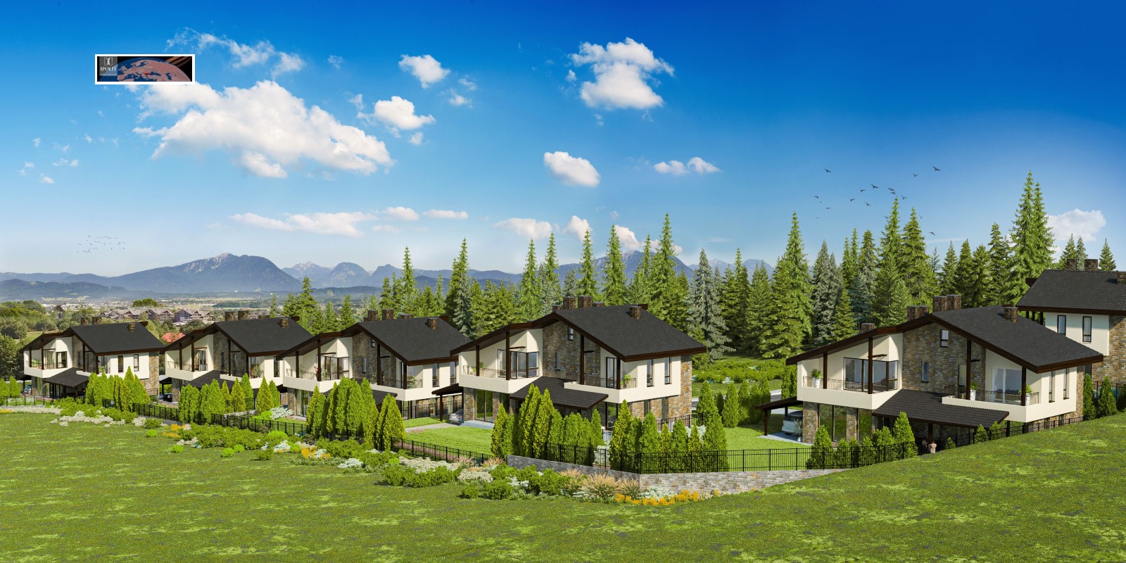 Просторна къща с панорамни гледки, собствен двор и стил, част от вилно селище Pirin Dreams (на 400 метра от Pirin Golf and Country Club).