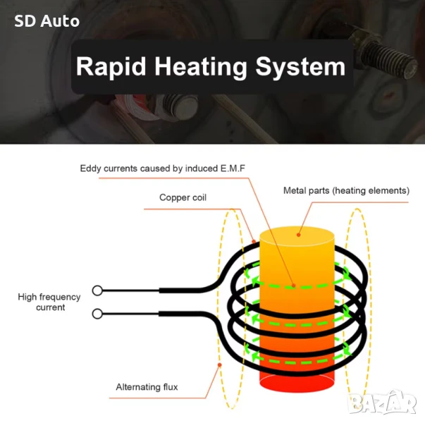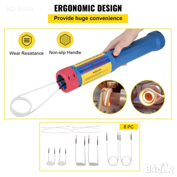***Описание:Този компактен и преносим магнитен индукционен нагревател може да се използва в различни индустрии за нагряване на ръждясали винтове и лагери, зъбни колела и др. (не е включен в комплекта). Принципът на електромагнитната индукция, който използва, може бързо да нагрее железни и стоманени части. Без дим и еднороден, което може значително да подобри ефективността на работата ви. Той също така разполага с ръчен дизайн за лесна и безопасна работа и е лесен за носене, което го прави подходящ за работа на място.Продуктът може да се използва за нагряване на малки стоманени и железни части на автомобили и машини и се използва главно за нагряване на ръждясали болтове, гайки, зъбни колела, ролки, лагери и др. на автомобили.Продуктът използва високочестотно магнитно поле и принципа на електромагнитна индукция за нагряване на винтове или гайки без открит пламък и изисквания за водно охлаждане, което го прави лесен и безопасен за употреба.Моля, обърнете внимание, че продуктът е подходящ само за стоманени и железни изделия.