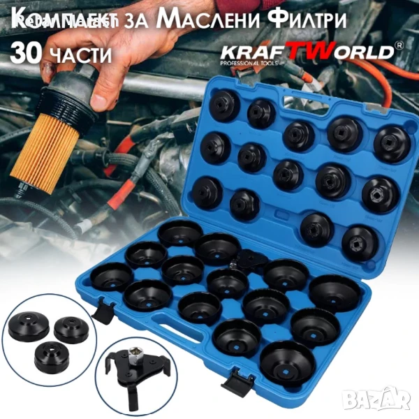 💪 Спестете време и усилия! Вземете KRAFTWORLD – комплект за маслени филтри (30 части) и си осигурете професионален инструмент на достъпна цена!