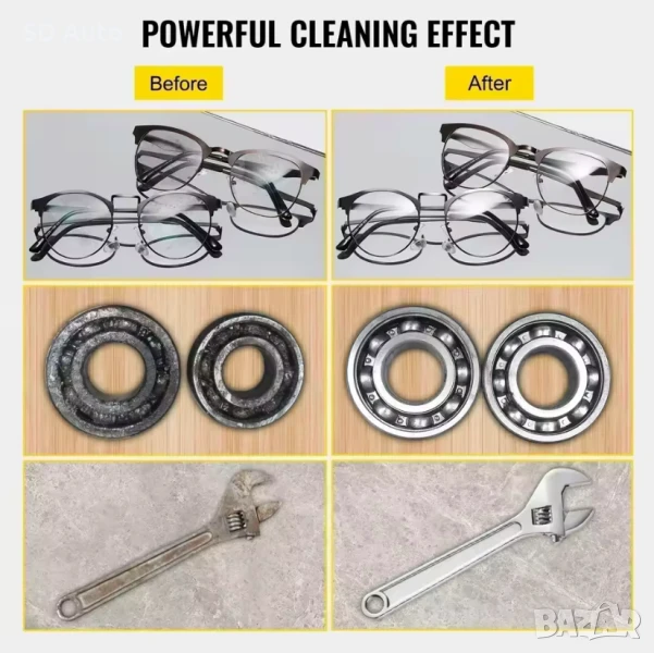 ***Ултразвуковата почистваяа вана е идеална за домашна или професионална употреба и се използва широко за почистване на сервизно оборудване,механични детаили,бижута, очила, часовници, метални инструменти, стоматологично оборудване, лабораторни прибори и др.