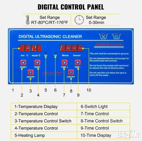 ***Ултразвукова дигитална почистваща вана 10 Литра / 40 kHz