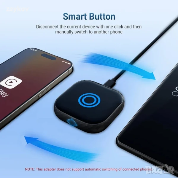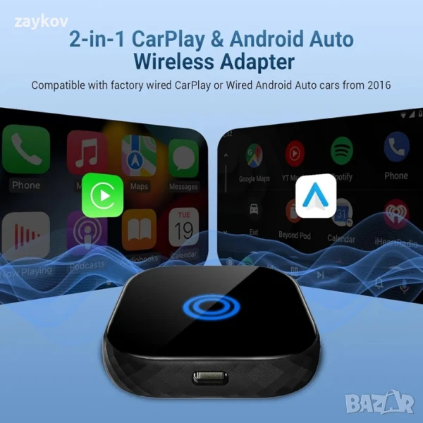 2-в-1 безжичен CarPlay адаптер и безжичен адаптер за Android Auto