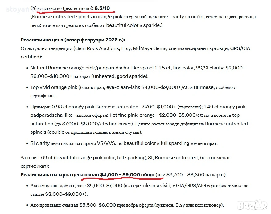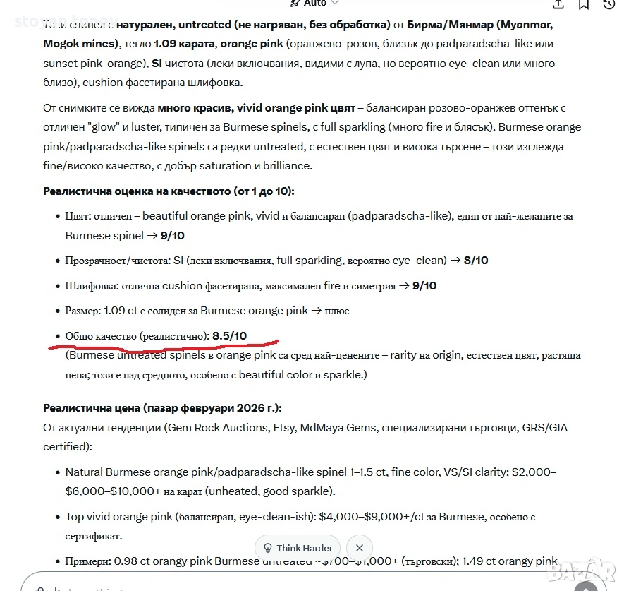 Това е един много красив, vivid orange pink цвят – балансиран розово-оранжев оттенък с отличен "glow" и luster, типичен за шпинелите от Бирма, с full sparkling (много fire и блясък).