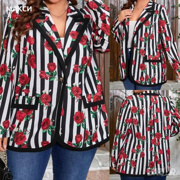 Уникално еластично макси елегантно сако с джобове в красив флорален десен, снимка 1 - Сака - 50499750 1/1