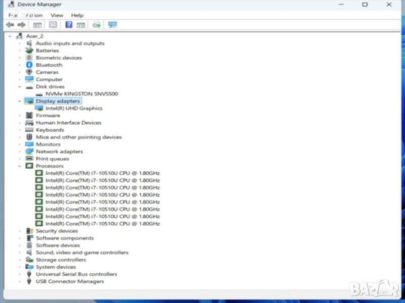 Процесор: Intel Core i7-10510U (4 ядра, 8 нишки, до 4.9GHz) – мощен и енергийно ефективен