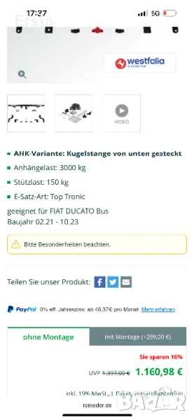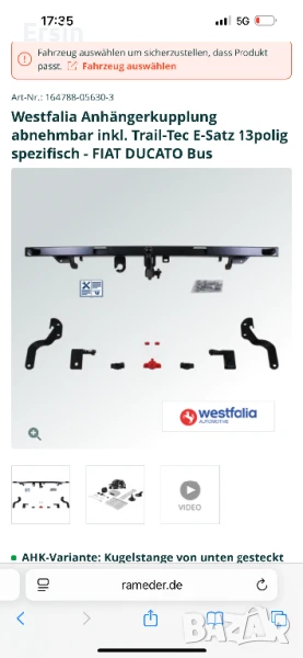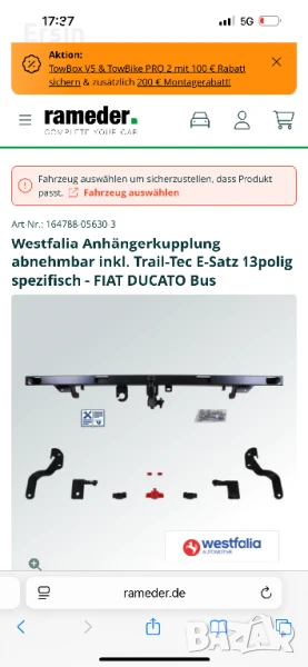 Разглобяем теглич Westfalia 01.09.2021 За Fiat Ducato Kasten 06/06 → Обява 50500109