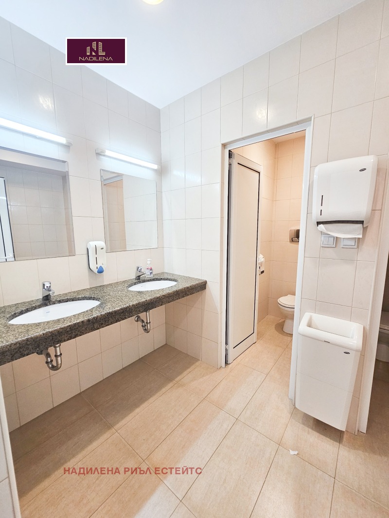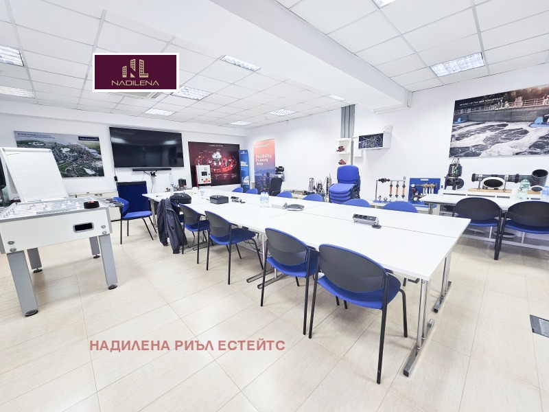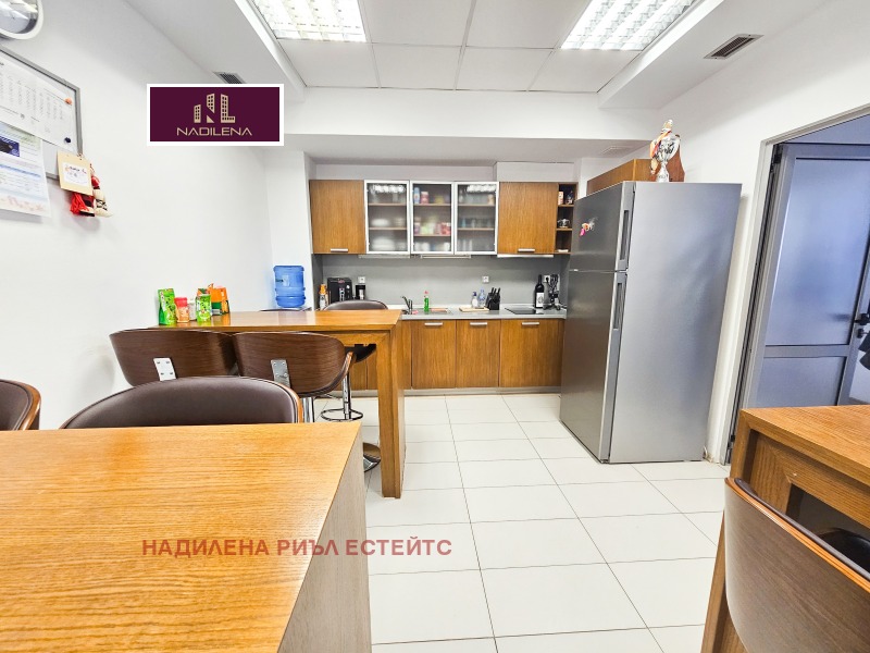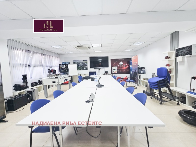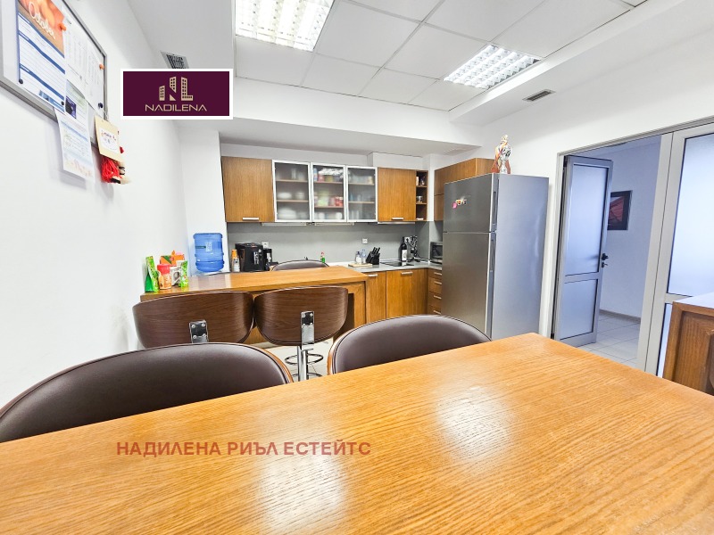 ДО ЛЕТИЩЕ СОФИЯ! НАДИЛЕНА РИЪЛ ЕСТЕЙТС предлага за отдаване под наем представителен офис с площ от 680м2, със самостоятелен вход и контролиран достъп до него. Сградата се намира в близост до бул. Брюксел и бул.'Христофор Колумб', на минути от метростанция 'Софийска Света гора'. Има постоянна 24-часова охрана, видеонаблюдение. Цялата площ е разпределена на 3 етажа: 1-во ниво с площ от 185м2-приемна, едно голямо отворено пространство, санитарни възли, сървър, складово помещение с площ от 50м2. 2-ро ниво с площ от 245м2-4 кабинета, стая, санитарни възли, голяма оборудвана кухня. 3-то ниво с площ от 245м2-директорски кабинет, огромна заседателна зала, счетоводство, кабинет, стая за релакс и кухненски бокс, санитарни възли. С възможност за преразпределяне на площите. Настилката е навсякъде гранитогрес, поставени са щори, окачен таван с офисно осветление. Отопление-чилър за топло и студено. Огромно предимство е, че има възможност за наемане на голям брой паркоместа. За поддръжка на общите части се заплаща-1.5EUR/м2. Собственост е на юридическо лице и над посочените цени се начислява ДДС. За допълнителна информация и огледи се обръщайте към Надя Антова-088/9999 413, 0888/788 420, Васил-0899/18 35 80