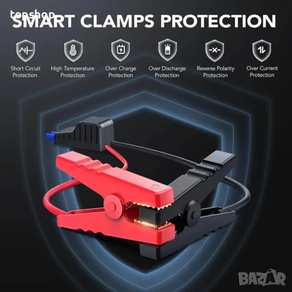 - Водоустойчива система IP67 - Оборудвана с най-професионалния водоустойчив дизайн IP67. Твърд външен дизайн, той автоматично е устойчив на надраскване, прах и удар дори при лошо време. Пакетът за скок на кола може да издържи на смазване от кола и всякакви случайни изпускания.