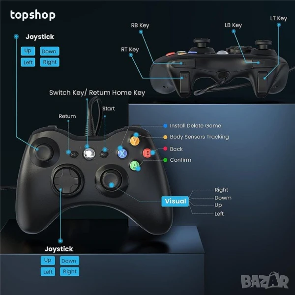 Xbox 360 Controller –а функционира с всички Windows базирани компютри, както и всички ревизии на Xbox 360 и Ви доставя едно невероятно гейминг изживяване!