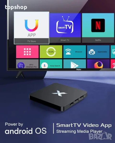 Тази Android TV бокс е оборудвана с мощен чипсет четириядрен процесор и Android система. В сравнение със старата система Android, стандартите за производителност и наличност са подобрени и реакцията е бърза и гладка.