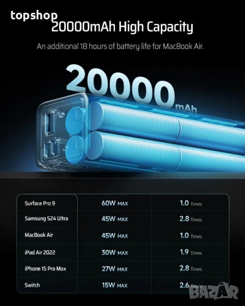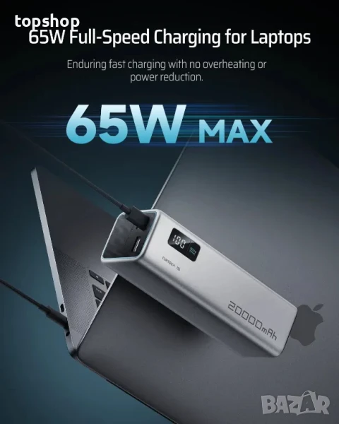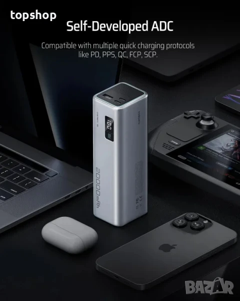 CUKTECH Power Bank, преносимо зарядно устройство 20000mAh с PPS PD3.0, двойни портове за зареждане, съвместимо с iPhone 15/14, iPad Air/Pro, Samsung S24 Ultra, Surface Pro, Switch и други
