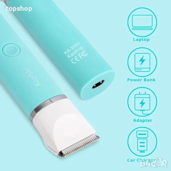 Водоустойчив тример Kaphio 2 в 1 акумулаторен тример за жени (тяло и бикини), Тифани синьо