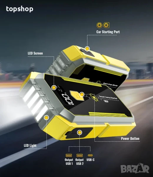 НОВ смарт jump starter стартов стартер 5000A, батерия за старт на двигателя, 26800mAh
