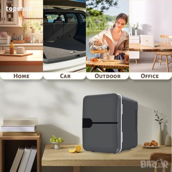 НОВ 2 в 1 мини хладилнк с функция за подгряване, адаптер за кола, сив