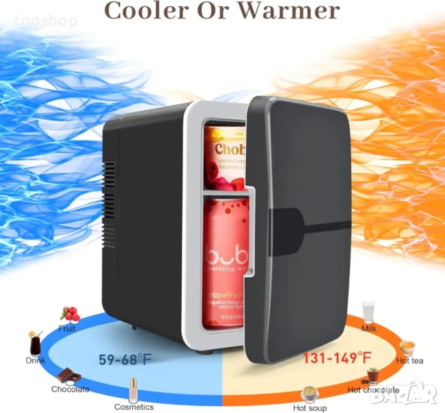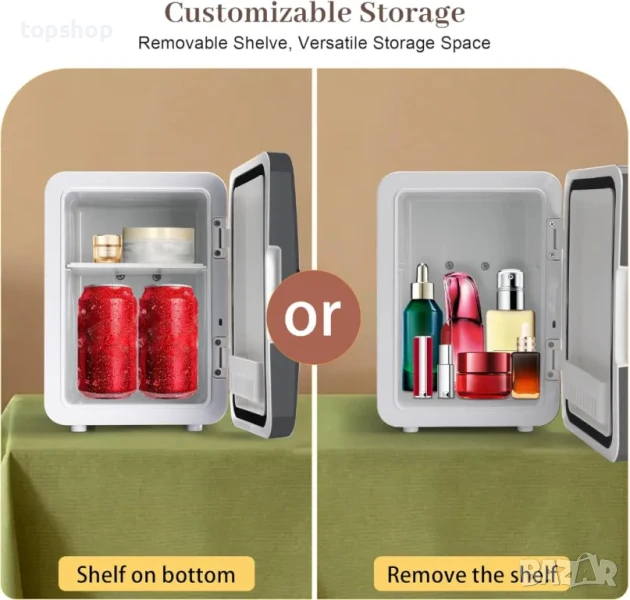 【Универсален компактен хладилник】Гъвкав и компактен мини хладилник, който предлага удобно съхранение на различни продукти, включително храна, напитки, бира, закуски, кърма, козметика и продукти за грижа за кожата. Насладете се на удобството на решението "всичко в едно" за съхранение и поддържане на вашите основни неща свежи.