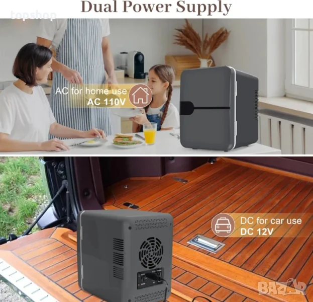【Удобна употреба вкъщи и в кола】Изпитайте удобството да използвате този мини хладилник у дома и в колата си с опциите за двойно захранване. Предлага се с два захранващи кабела: 110V AC кабел за лесна домашна връзка и 12V DC кабел за използване във вашето превозно средство. Просто включете AC кабела в стандартен стенен контакт за домашна употреба или свържете DC кабела към запалката на колата си за преносима функционалност.