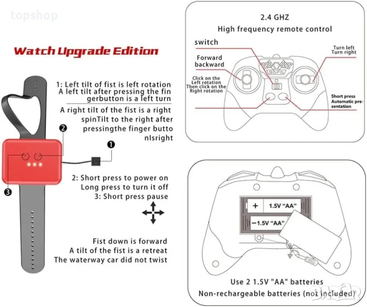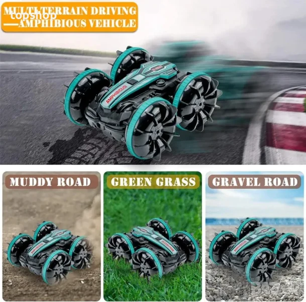 Кола амфибия,Двойно дистанционно контролер+часовник за разпознаване на жестове 2,4 GHz