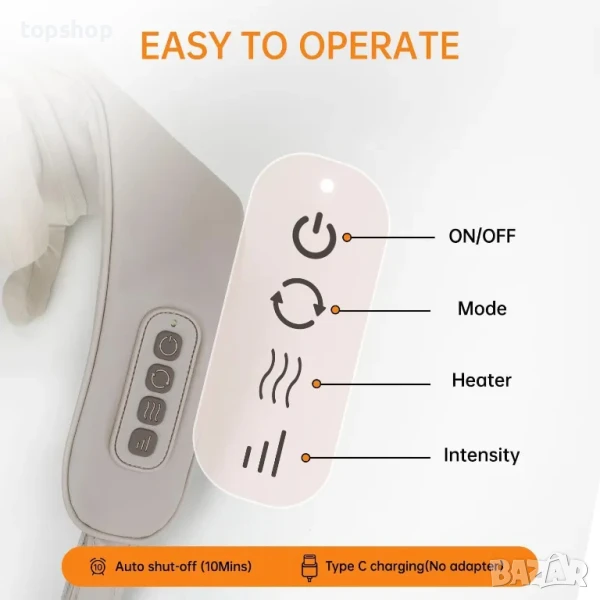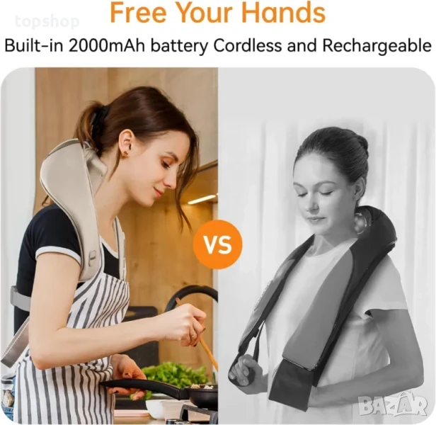 Технология: Използва дълбоко размесващи Шиацу възли, комбинирани с топлинна терапия, за да се насочат към специфични мускули във врата и раменете.