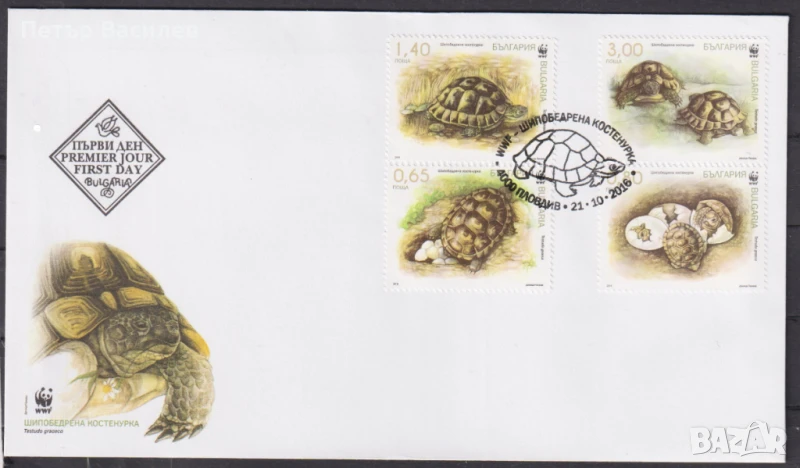 Първодневен плик WWF Фауна Костенурки 2016 от България .