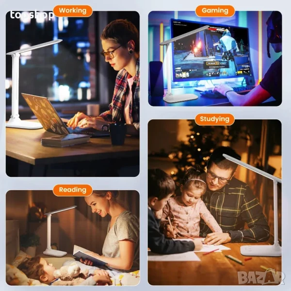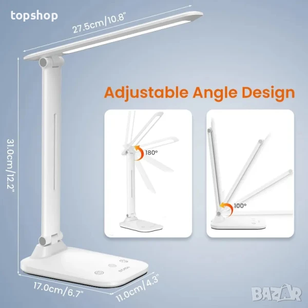 НОВА LED настолна лампа, USB type C, сгъваема, 5 цвята на осветление и 100%~15% нива на яркост