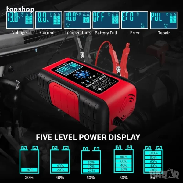 Зарядно за алумилатори E-FAST, 10A Lifepo4, 12/24V, всичко в 1 - камион, кола, мотоциклет, лодка...