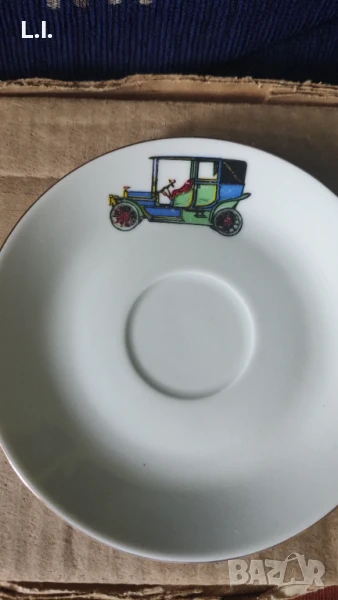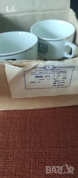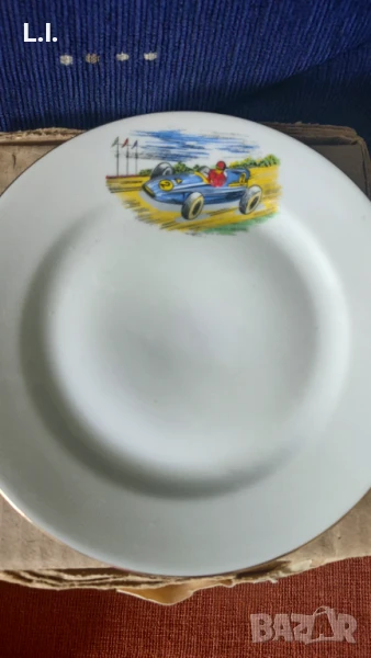 Стар детски сервиз от епохата на социализма на Разград Китка. Състои се от четири части- чаша, купичка, малка и голяма чиния. Чисто нов, без забележки.