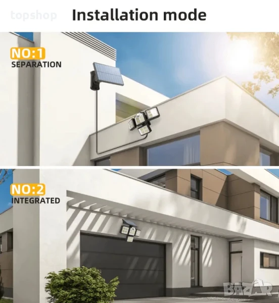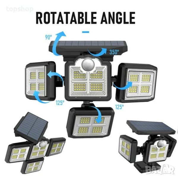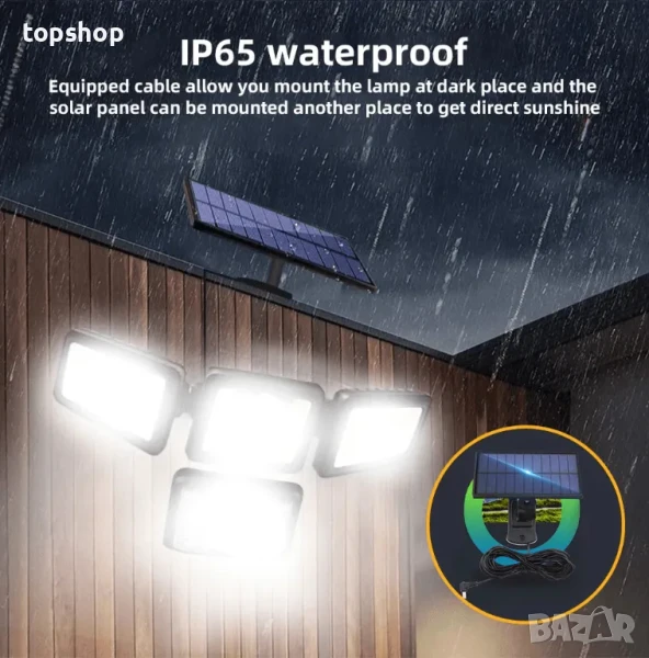 Външен соларен панел с датчик за движение и зареждане + дистанционно.